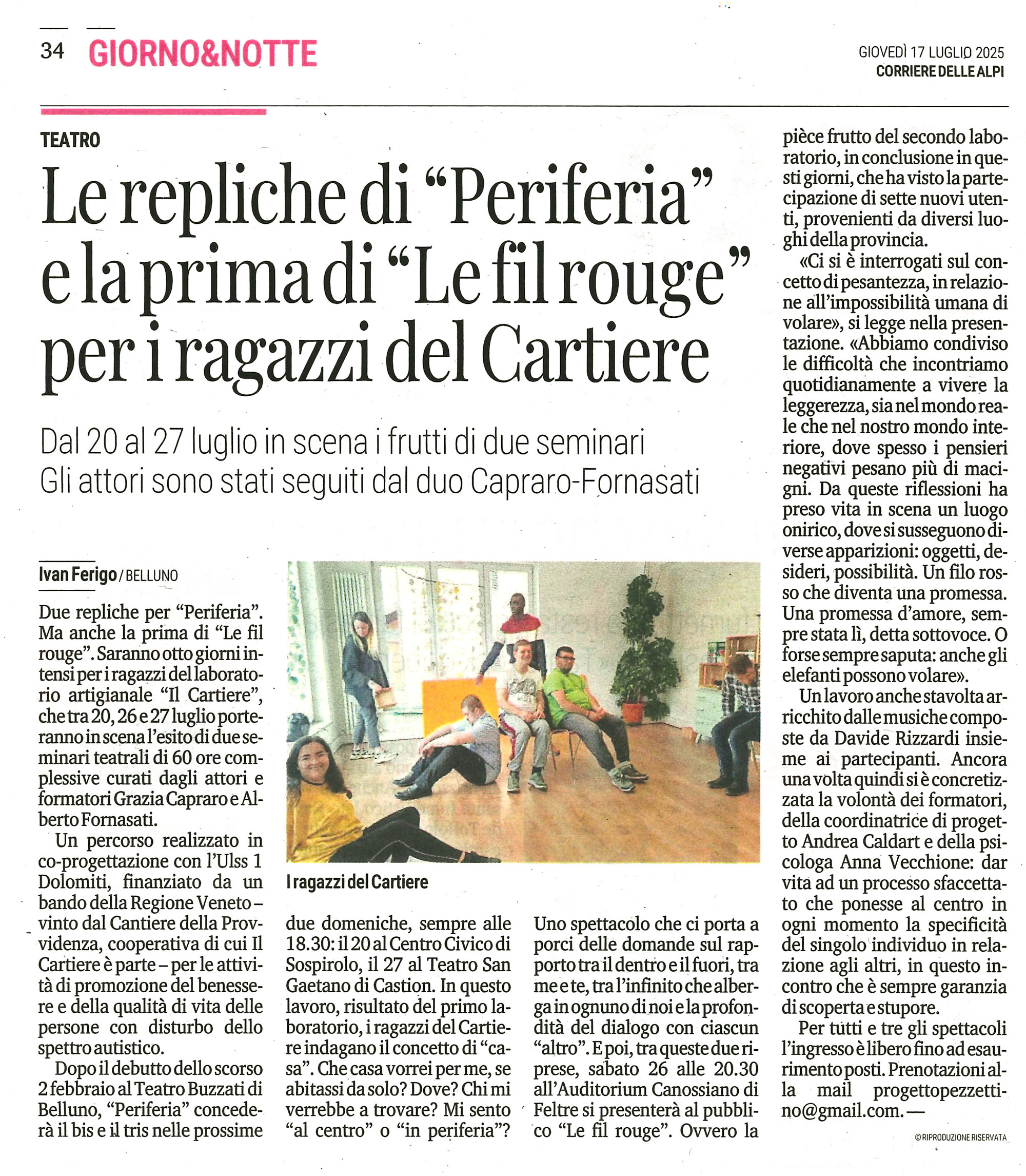Il Cartiere, Regione del Veneto, Spettacolo "Periferia", ULSS 1 Dolomiti