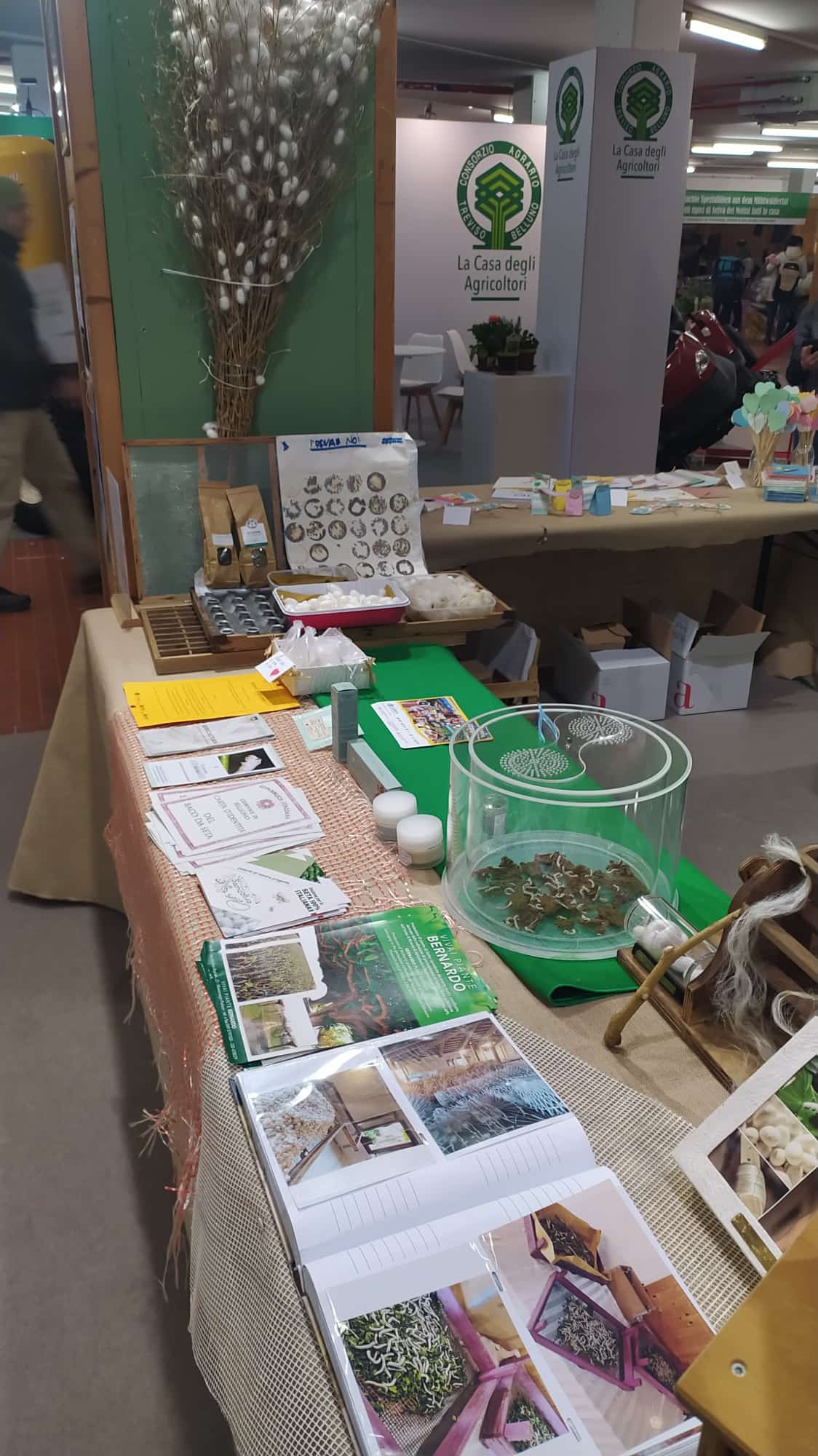 - presenteranno i prodotti della bachicoltura (bozzoli commerciali, matassine di seta, brochure sulla gelsibachicoltura, creme per la cosmetica con sericina, raggiere con bozzoli, crisalidi, farina di crisalidi, foto dell’allevamento);